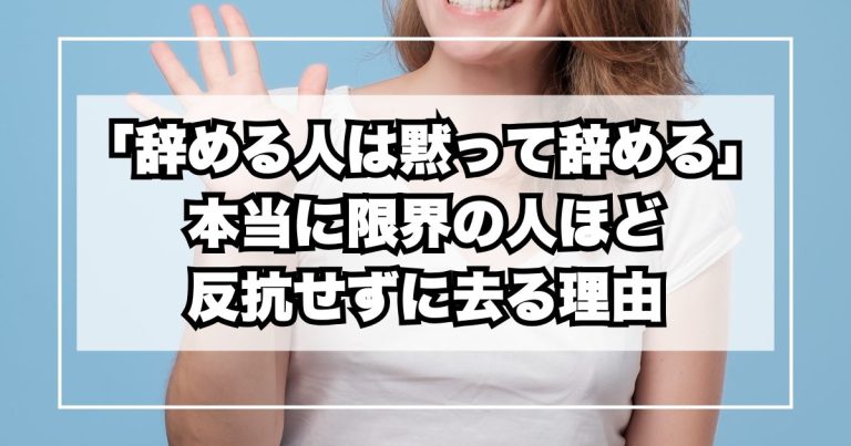 この記事では、「なぜ本当に限界の人ほど、黙って辞めるのか?」という心理を深掘りしつつ、悩み続けるよりも“行動に移す”ことの価値を解説していきます。
